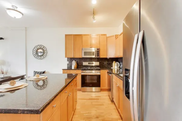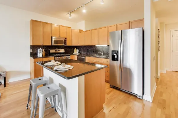 Fabulous 2 bedroom / 2 bath soft loft in the heart of West Loop. Open island kitchen features stainless appliances, maple cabinets and granite counters. Spacious living area, with fireplace, floods with light and leads out to a balcony and stunning city views. Generous master suite with walk-in closet, and a marble bathroom with double vanity. Fresh paint throughout and in-unit laundry. Heated, deeded garage spot $25,000 additional. Building has a sundeck, fitness room and a Starbucks right outside the entry. Can't get more central than this, Walk Score of 98, public transportation and access to 90/94 and 290. Close to a multitude of restaurant options on Randolph Street and Fulton Market, such as Girl & The Goat, Au Cheval, Green Street Smoked Meats, Publican and Next, just to name a few. Also, just a few blocks to Whole Foods, Bartleme and Skinner Parks, United Center, hotels and shopping.