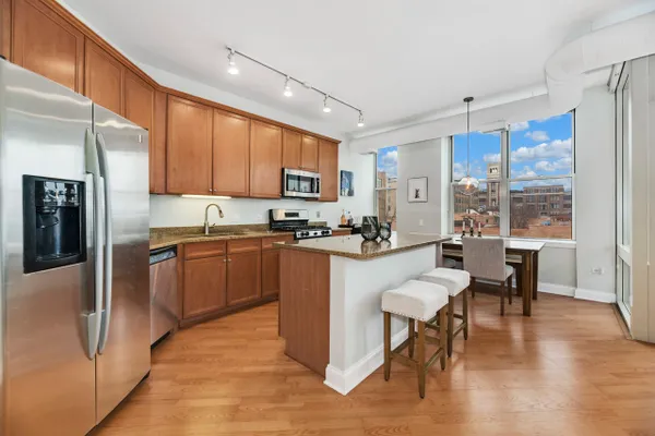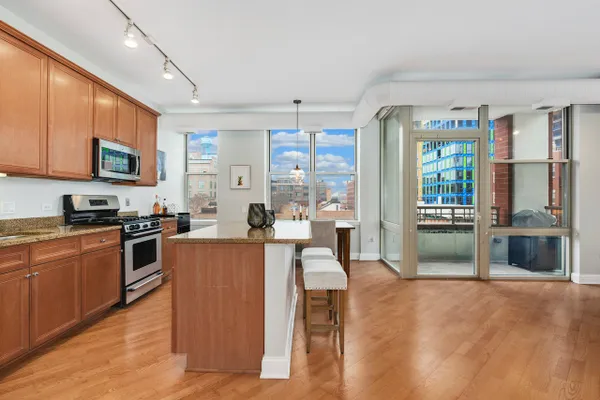 SOLD BEFORE PRINT - Walk into this bright and spacious home with a desirable floor plan featuring an open kitchen, dining room, and wide living room with floor-to-ceiling windows and private deck. Enjoy hardwood flooring throughout all the living areas and notice both bedrooms are fully enclosed. Plentiful storage with coat closet off the foyer, pantry, and double master closets that include a professionally organized walk-in closet. The over-sized master bedroom includes an en-suite bathroom with double sinks and separate tub and shower. Kitchen features large island with bar seating and stainless steel appliances.