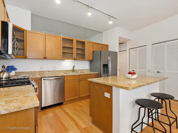 Welcome home to this beautiful 2 bedroom/2 bath penthouse condo in the absolute heart of the West Loop! This loft-like home has soaring ceilings, exposed ductwork, and a desirable split floor plan with two FULLY enclosed bedrooms. The open-concept kitchen features newer s/s appliances, granite counter tops, maple cabinetry, and large island. The floor plan allows plenty of room for a dining table and the living space centers around a cozy fireplace and large balcony with city views, a perfect set up for grilling and entertaining. Incredibly spacious master bedroom is equipped with an ensuite bath featuring a dual vanity and shower with glass enclosure. Tons of closet space throughout the unit as well as an additional storage locker included. Extremely rare EXTRA wide deeded parking spot that fits TWO cars side-by-side, additional $50k. Desirable building offers a fitness center, large sundeck, and a Starbucks! Location cannot be beat, just steps to the Loop, public transportation, expressway, Marianos/Whole Foods, and all the world class dining in the neighborhood. This is a must see!
