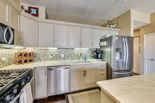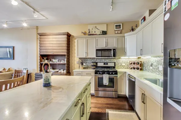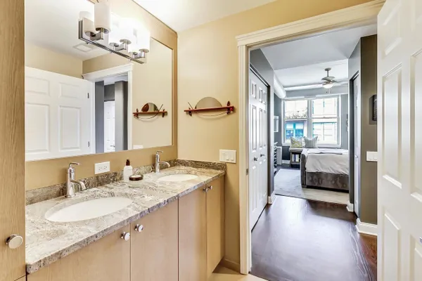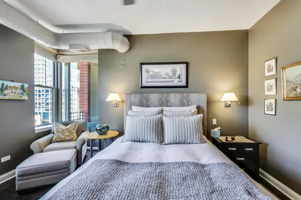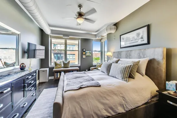 PRIME WEST LOOP 2 BEDROOM / 2 FULL BATH LOFT CONDO. THIS EXCEPTIONAL HOME HAS BEEN METICULOUSLY UPGRADED AND IS TRULY MOVE IN READY. THE 2 BEDROOMS ARE SPLIT AND THE PRIMARY BEDROOM IS COMPLETELY ENCLOSED WITH EN SUITE AND REMOTE CONTROLLED BLINDS . FEATURES INCLUDE KITCHEN WITH NEW STAINLESS APPLIANCES, QUARTZ COUNTERS, NEW BACK SPLASH, UNDER CABINET LIGHTING, DEEP UNDER MOUNT SINK AND LARGE ISLAND. BATHS HAVE BOTH BEEN REDONE AND PRIMARY EN SUITE INCLUDES A DOUBLE VANITY AND LARGE WALK-IN SHOWER WITH BODY SPRAYS, MARBLE AND GRANITE. THE UNIT HAS NEW WIDE PLANK ESPRESSO STAINED HARDWOOD FLOORING THROUGHOUT, CUSTOM CLOSETS (THERE ARE A LOT), NEWLY REDONE GAS FIREPLACE AND HEARTH, AND A LARGE COVERED BALCONY. UPGRADED FRONT LOAD WASHER AND DRYER AND NEWER MECHANICALS. VERY DESIRABLE GARAGE SPACE AVAILABLE FOR $30,000. A LARGE STORAGE LOCKER IS INCLUDED AND LOCATED ON THE SAME FLOOR. THE BUILDING IS LOCATED IN THE HEART OF THE WEST LOOP AND IS EXTREMELY WELL RUN WITH AN EXCELLENT TRACK RECORD. THERE IS AN EXERCISE ROOM AND A LOVELY ROOF TOP TERRACE / SUN DECK. YOU'RE STEPS TO RANDOLPH STREET RESTAURANTS, FULTON MARKET, SHOPPING, DINING AND NIGHTLIFE. GARAGE SPACE IS #72. PIN IS 17172030301117. TAXES ARE $730.16.
