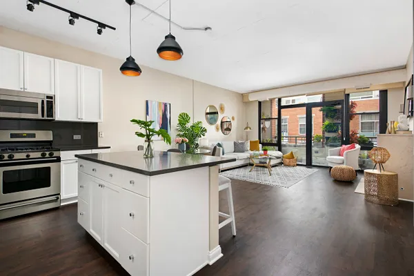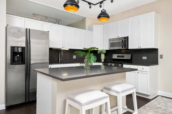 STUNNING, SUN-FILLED, HIGHLY UPGRADED 2 BR/2 BTH CONDO W/ BOTH BR'S FULLY ENCLOSED IN OUTSTANDING FULL AMENITY BLDG IN FANTASTIC WALK-TO-EVERYTHING LOCATION IN THE HEART OF THE RED HOT WEST LOOP! GOURMET COOK'S KITCH FEATURES STAINLESS STEEL APPS, ISLAND W/ BRKFAST BAR, HUGE FARM SINK, CUSTOM BACKSPLASH & COUNTERTOPS, SOFT-CLOSE DRAWERS, TONS OF CABINET STORAGE & PANTRY W/ BUILT-IN WINE RACK. LARGE DINING RM OPENS TO GRACIOUS LIVING RM W/ FIREPLACE W/ LIMESTONE SURROUND & FLOATING MEDIA CABINET. ENTIRE EAST WALL FEATURES FLR-TO-CEILING WINDOWS W/ CUSTOM HUNTER DOUGLAS BLINDS W/ DOOR OPENING TO LARGE BALCONY IDEAL FOR GRILLING & ENTERTAINING. HUGE PRIMARY SUITE FEATURES MARBLE SPA BTH, FULL WALL OF FLR-TO-CEILING WINDOWS & DRESSING AREA W/ NEW GRASSCLOTH WALLPAPER + 4 FULL-SIZED & ORGANIZED CLOSETS. LARGE 2ND BR IS FULLY ENCLOSED W/ CUSTOM GLASS PARTITION & FEATURES FLR-TO-CEILING CUSTOM SHELVING W/ LARGE STORAGE DRAWERS & ART TRACK FOR ADJUSTABLE "GALLERY WALL" (WHILE PROTECTING WALLPAPER). BRAND NEW H/W FLRS THROUGHOUT & CUSTOM LIGHTING THROUGHOUT. ENTRY FEATURES 2 FULL-SIZED ORGANIZED COAT/STORAGE CLOSETS. IN UNIT WASHER/DRYER. BIG FLR-TO-CEILING STORAGE CLOSET IDEALLY LOCATED DIRECTLY ACROSS HALL FROM UNIT FOR EASE OF ACCESS. LOW ASSESSMENT INCLUDES FITNESS CENTER, SUNDECK, CABLE & HIGH SPEED INTERNET. WALK TO RESTAURANTS, HEALTH CLUBS, COFFEE SHOPS, GROCERIES, PARKS, BOUTIQUES, SHOPPING, THE L & ALL THAT THE WEST LOOP HAS TO OFFER! DEEDED ATTACHED GARAGE AVAIL FOR $30,000. THIS IS A WINNER!